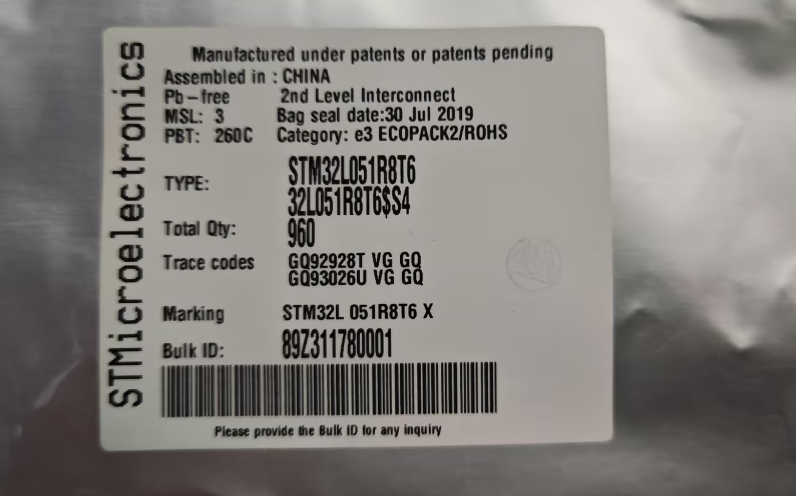 型号:STM32L051R8T6,DC19+